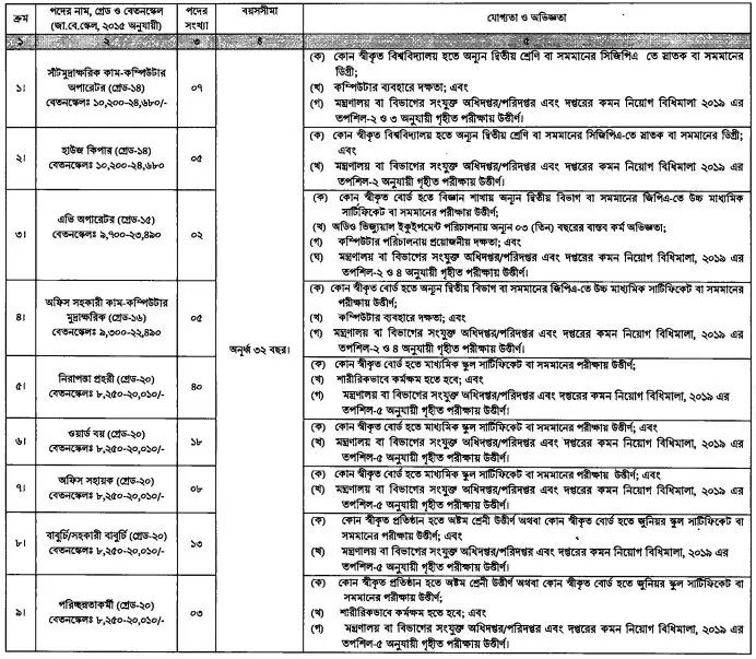 পদের বিবরণ: (বিস্তারিত পদসমূহ বিজ্ঞপ্তিতে দেখুন)
