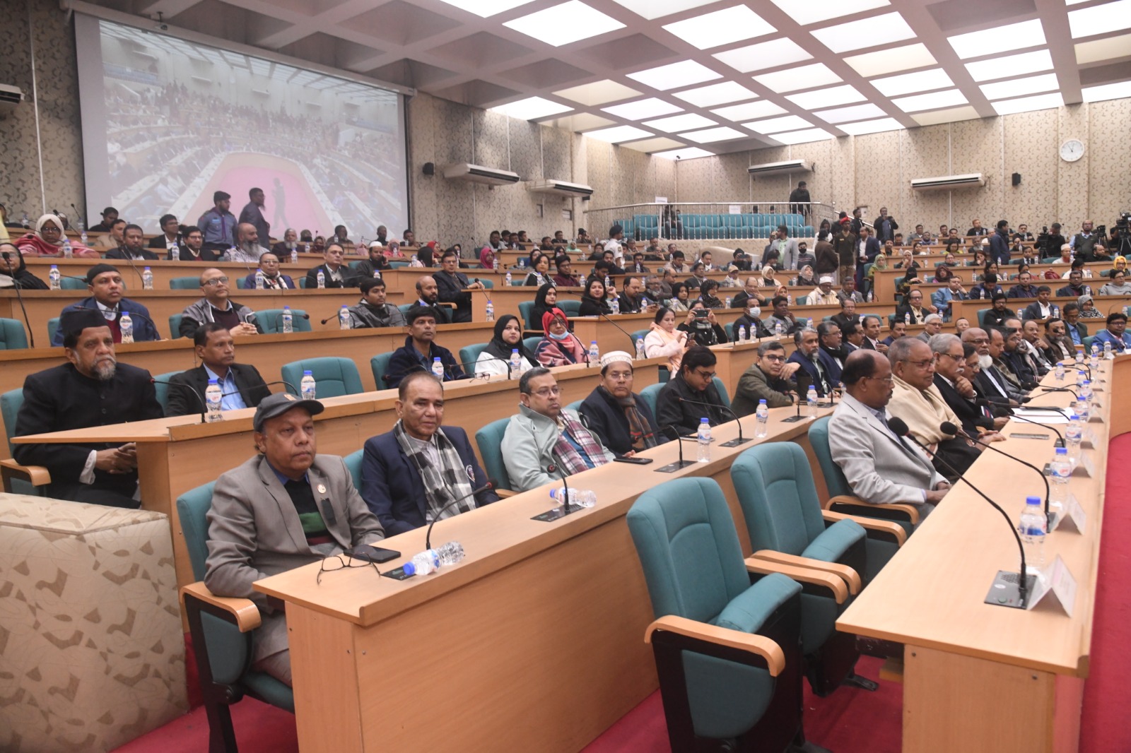 অনুষ্ঠানে উপস্থিত ছিলেন ঢাকা বিশ্ববিদ্যালয়ের উপাচার্য প্রফেসর ড. নিয়াজ আহমেদ খান, প্রোভিসি(শিক্ষা) প্রফেসর ড.মামুন আহমেদ, প্রোভিসি(প্রশাসন) প্রফেসর ড.সায়মা হক বিদিশা, ঢাকা ইউনিভার্সিটি অ্যালামনাই অ্যাসোসিয়েশন (ডুয়া) আহ্বায়ক শামসুজ্জামান দুদু ও সদস্যসচিব এ টি এম আবদুল বারী (ড্যানী), ঢাকা বিশ্ববিদ্যালয় কেন্দ্রীয় ছাত্র সংসদের (ডাকসু) সহ সভাপতি সাদিক কায়েম সহ ডাকসু, জাতীয়তাবাদী ছাত্রদল, ইসলামি ছাত্রশিবির ও অন্যান্য ছাত্রসংগঠনের নেতারা।