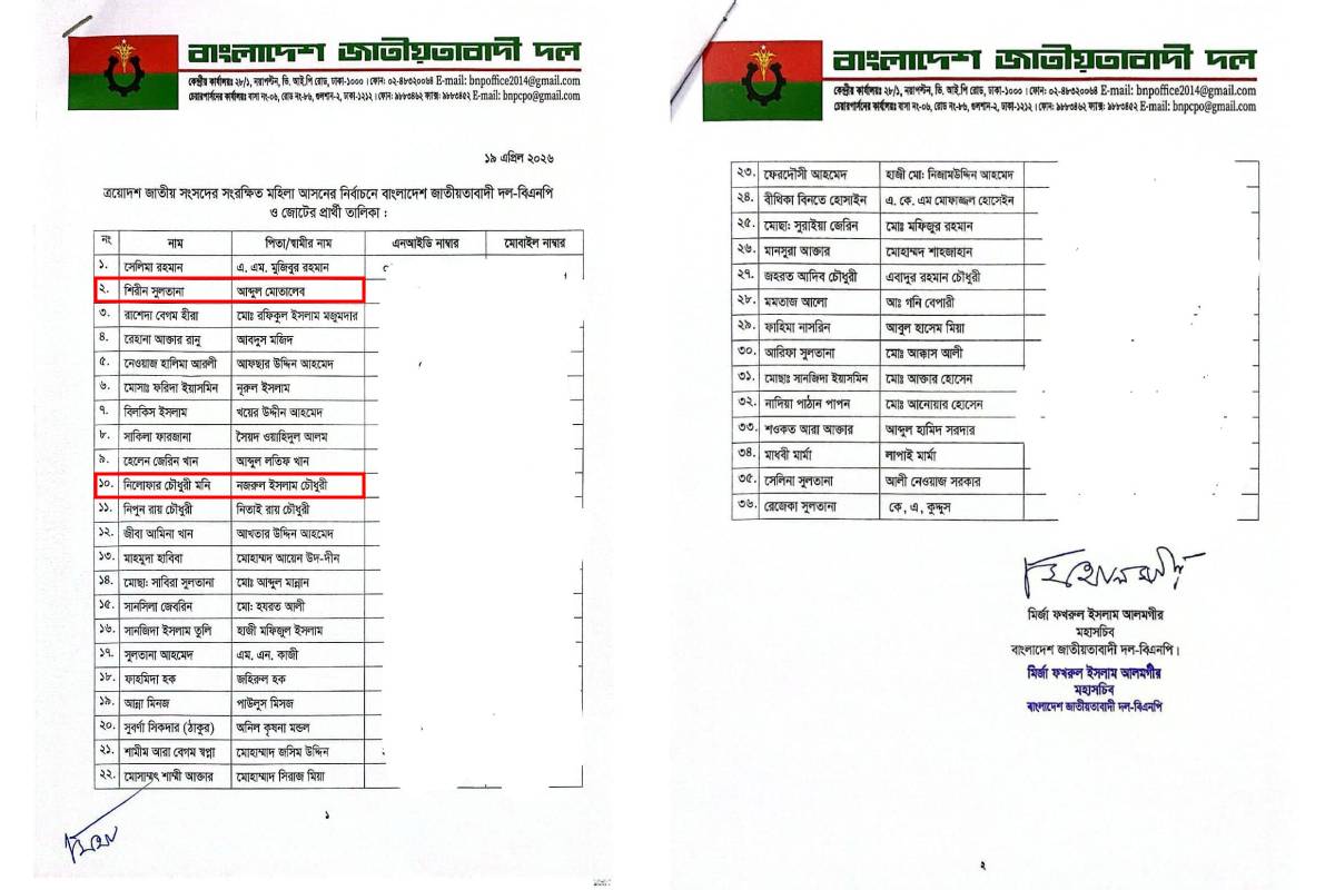 সংবাদ সম্মেলনে জানানো হয়, দলের হাইকমান্ডের সিদ্ধান্ত অনুযায়ী দেশের বিভিন্ন পর্যায়ের ত্যাগী ও যোগ্য নারী নেত্রীদের এই মনোনয়ন দেওয়া হয়েছে। ৩৬ জনের এই তালিকায় ঢাকা বিশ্ববিদ্যালয়ের সাবেক শিক্ষার্থী ও ঢাবি অ্যালামনাই অ্যাসোসিয়েশনের সক্রিয় সদস্য শিরীন সুলতানা ও নিলোফার চৌধুরী মনির নাম অন্তর্ভুক্ত হওয়ায় সংগঠনের সদস্যদের মধ্যে আনন্দ লক্ষ্য করা গেছে।